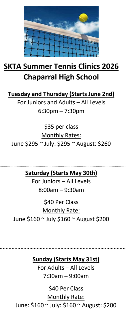 Summer Tennis Clinics 2026